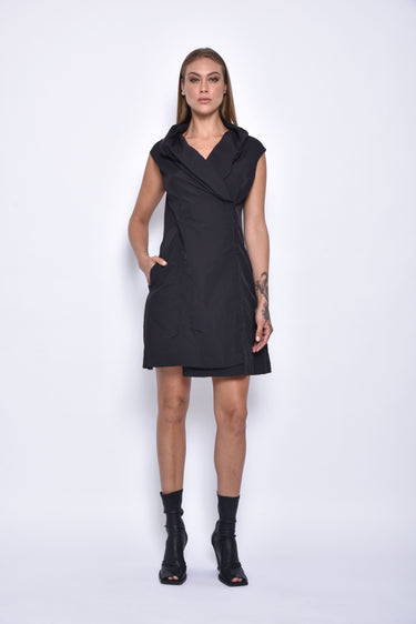 The Juliet dress features a front closure that wraps around the body with a convenience zipper making it easier to put on and take off. The bunched up collar adds a touch of flair or a bit of texture to the neckline. A functional addition, pockets provide a practical touch.